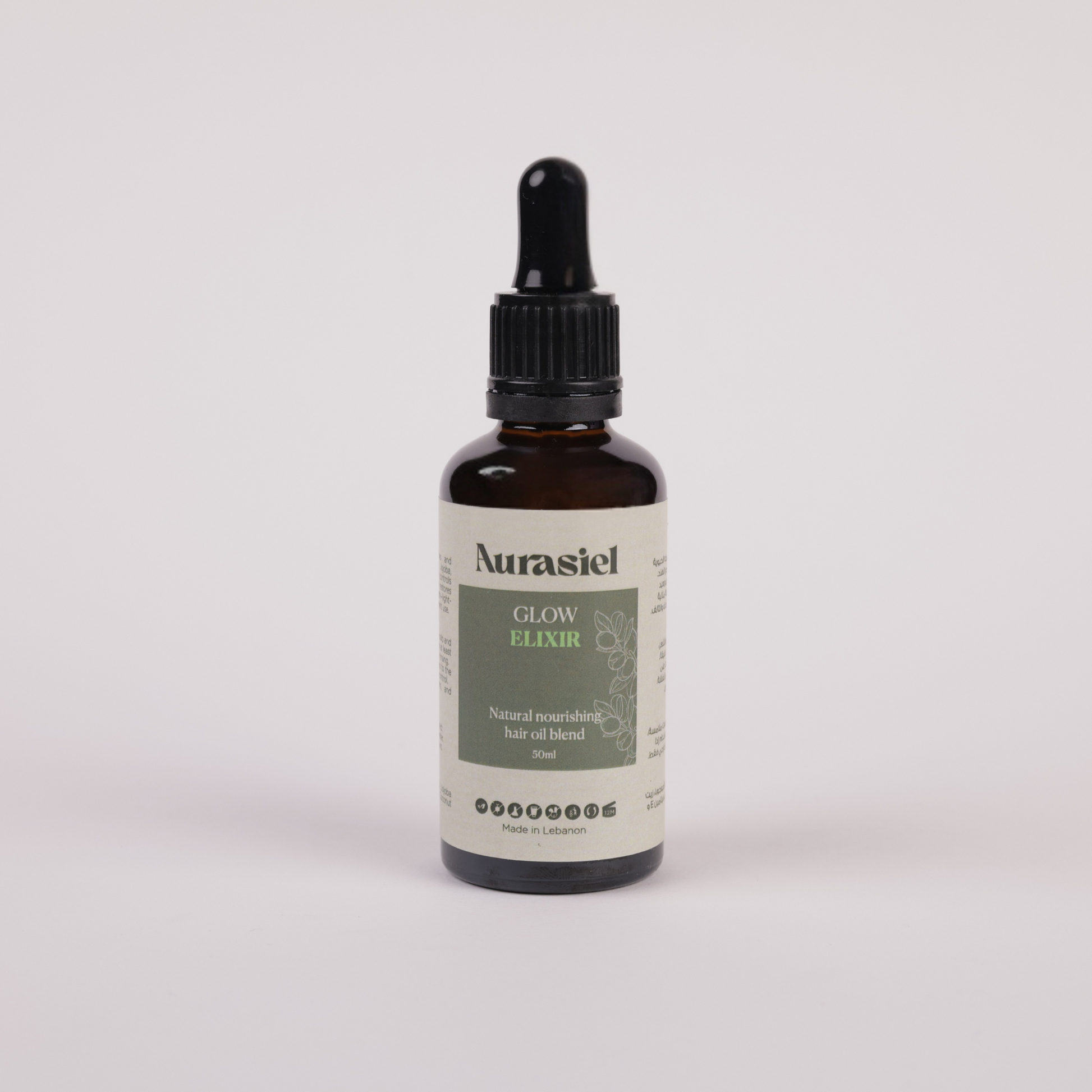Aurasiel's Glow Elixir Hair Oil is a luxurious blend of Argan Oil, Olive Oil, Almond Oil, Jojoba Oil, and Coconut Oil that deeply hydrates, smooths, and nourishes your hair. Infused with Aloe Vera Oil, it soothes the scalp while locking in moisture for soft, glossy, and frizz-free hair. Vitamin E and BO5 provide antioxidant protection, enhancing shine and strength.